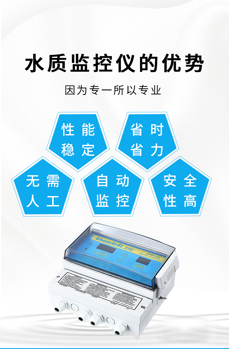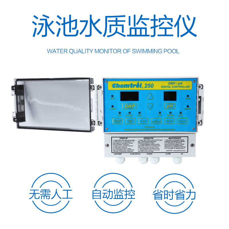 人工投藥藥量不穩(wěn)定,含氯/溴不足,細(xì)菌,藻類容易滋生。使用全自動監(jiān)控儀,每天耗電不到1度,無需人工,自動控制水質(zhì),商家游泳池理想匹配產(chǎn)品。